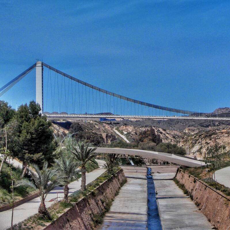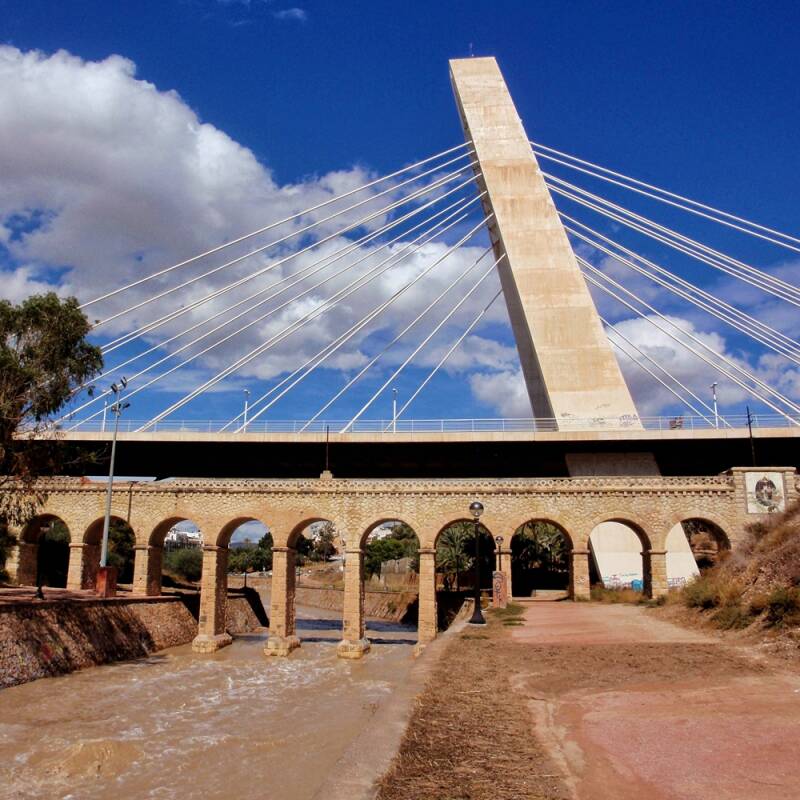 Puente de Canalejas y río Vinalopó tras unas lluvias torrenciales